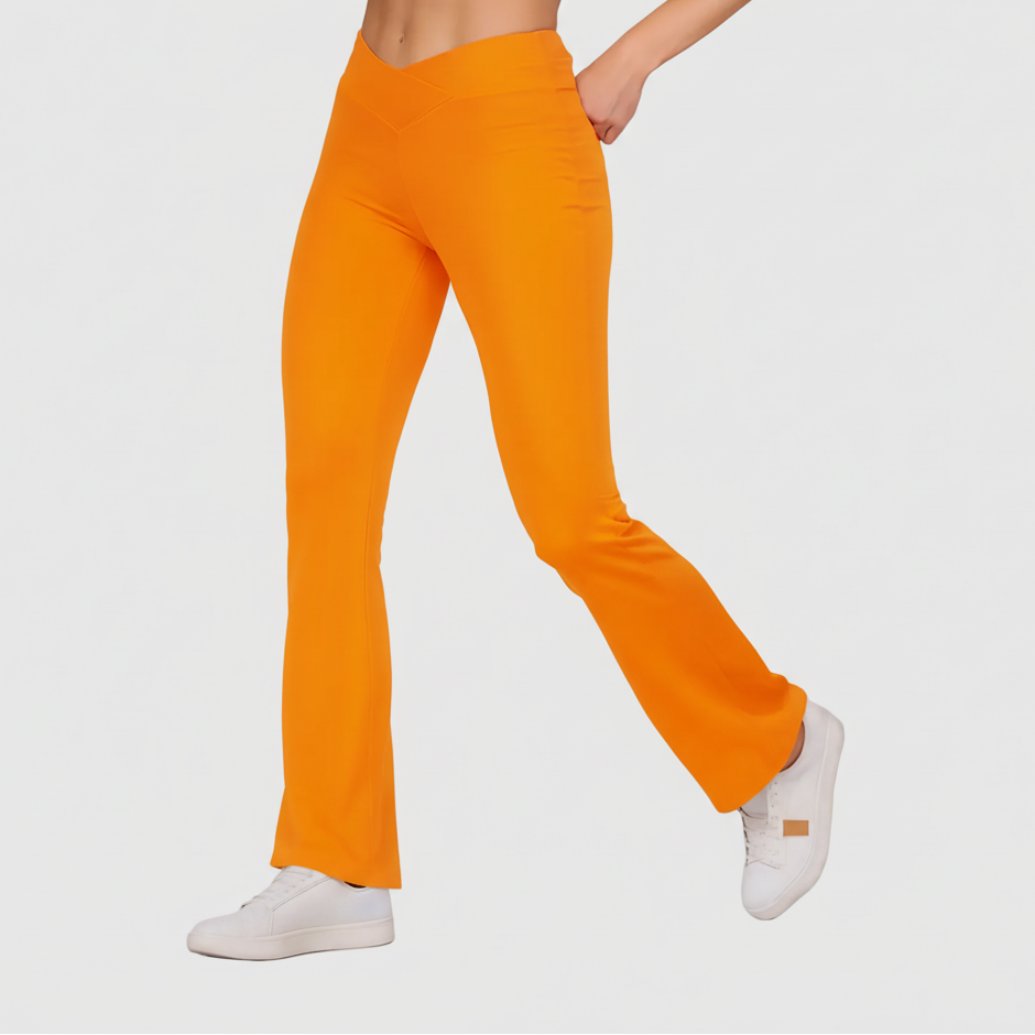 Bringing retro style back to the gym with modern performance features. Available in Black and Orange at $28.00, these high waist leggings feature a fashionable flared leg that creates a lengthening silhouette. The compression waistband provides tummy control while the flared design allows for unrestricted movement during yoga, Pilates, and dance-based workouts.